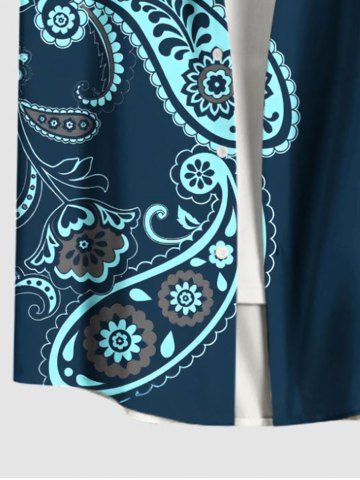 Plus Size Flower Paisley Print Hawaii Button Pocket Shirt For Men - Deep Blue - M