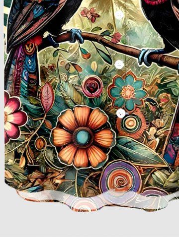 Short Sleeves Shirts > Plus Size Flower Parrot Ethnic Graphic Print Hawaii Button Pocket Shirt For Men