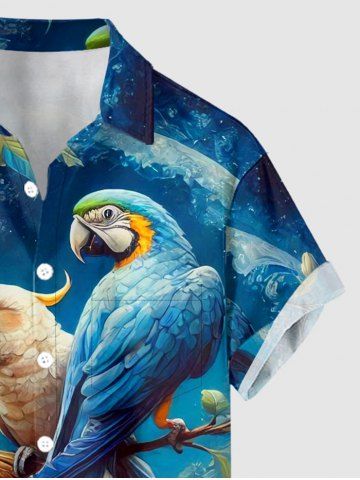 Short Sleeves Shirts > Plus Size Flower Parrot Tree Branch Print Hawaii Button Pocket Shirt For Men