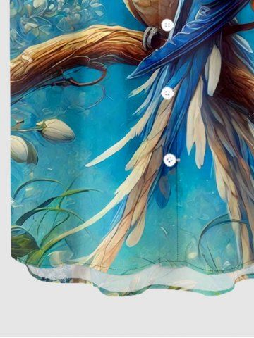 Plus Size Flower Parrot Tree Branch Print Hawaii Button Pocket Shirt For Men - Deep Blue - Xl