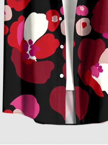 Plus Size Flower Petal Heart Print Hawaii Button Pocket Shirt For Men - Red - 5xl