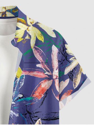 Plus Size Flower Plant Print Hawaii Button Pocket Shirt For Men - Purple - 5xl