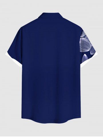 Plus Size Flower Print Hawaii Button Pocket Shirt For Men - Blue - 2xl