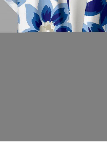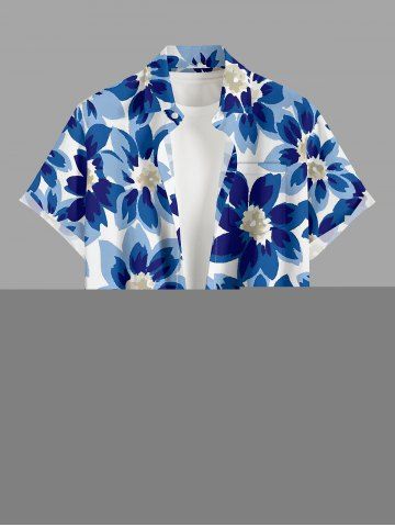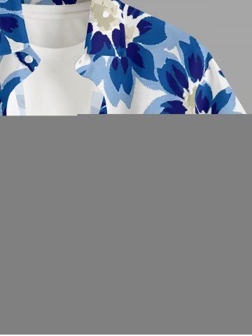 Plus Size Flower Print Hawaii Button Pocket Shirt For Men - Deep Blue - M