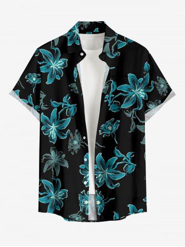 Plus Size Flower Print Hawaii Button Pocket Shirt For Men - Dark Turquoise - 4xl