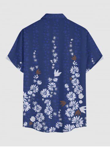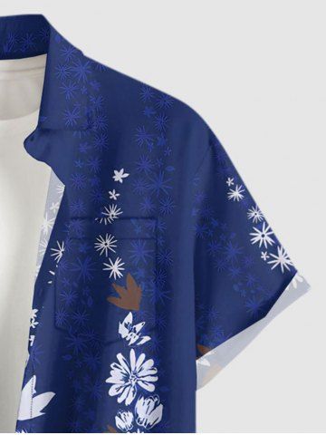 Plus Size Flower Print Hawaii Button Pocket Shirt For Men - Blue - L