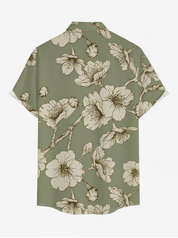 Plus Size Flower Print Hawaii Button Pocket Shirt For Men - Light Green - L