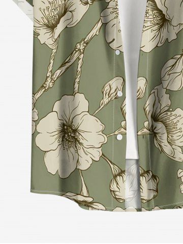 Plus Size Flower Print Hawaii Button Pocket Shirt For Men - Light Green - Xl
