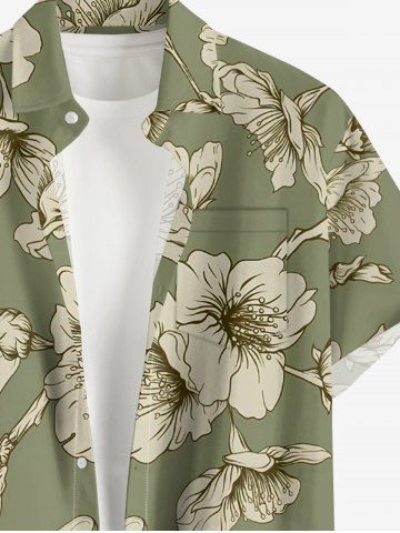 Plus Size Flower Print Hawaii Button Pocket Shirt For Men - Light Green - 2xl