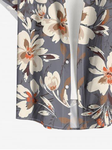 Plus Size Flower Print Hawaii Button Pocket Shirt For Men - Light Gray - L