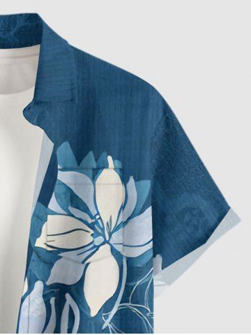 Plus Size Flower Print Hawaii Button Pocket Shirt For Men - Peacock Blue - S