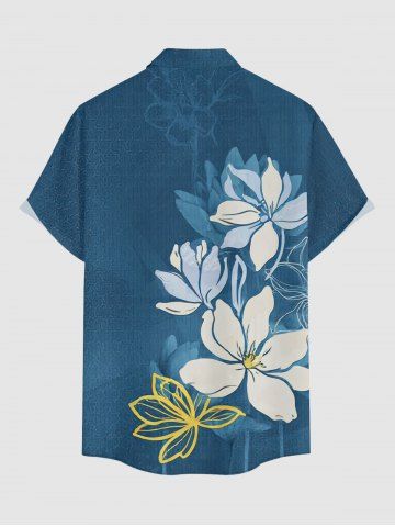 Plus Size Flower Print Hawaii Button Pocket Shirt For Men - Peacock Blue - 5xl