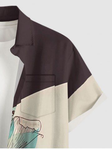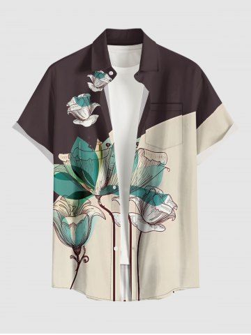 Plus Size Flower Print Hawaii Button Pocket Shirt For Men - Deep Brown - 2xl