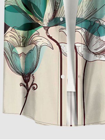 Short Sleeves Shirts > Plus Size Flower Print Hawaii Button Pocket Shirt For Men