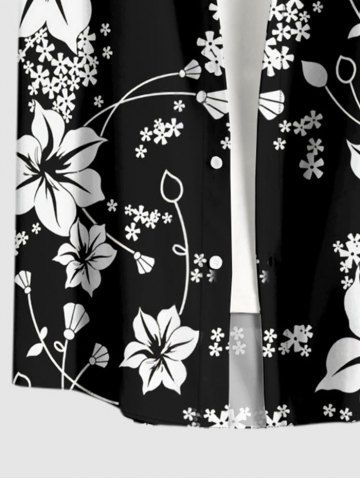 Plus Size Flower Print Hawaii Button Pocket Shirt For Men - Black - 5xl