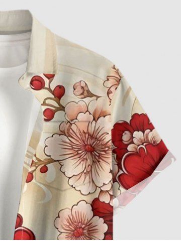 Plus Size Flower River Print Hawaii Button Pocket Shirt For Men - Deep Red - 2xl