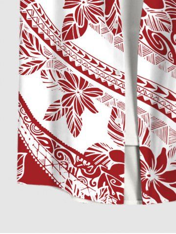 Plus Size Flower River Striped Print Hawaii Button Pocket Shirt For Men - Red - M