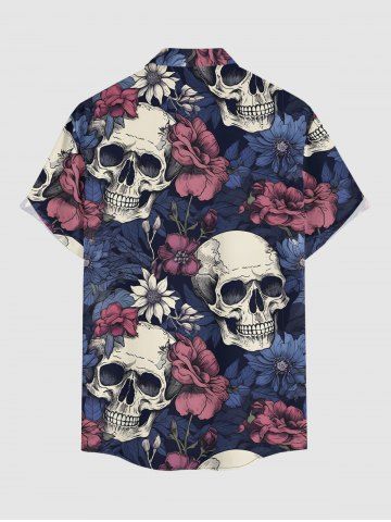 Plus Size Flower Skull Print Hawaii Button Pocket Shirt For Men - Deep Blue - 5xl