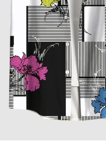 Plus Size Flower Striped Colorblock Scarf Graphic Print Hawaii Button Pocket Shirt For Men - Black - 4xl