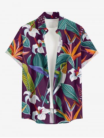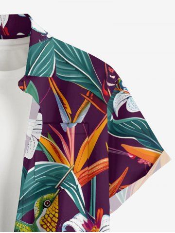 Short Sleeves Shirts > Plus Size Flower Tropical Leaf Bird Print Hawaii Button Pocket Shirt For Men