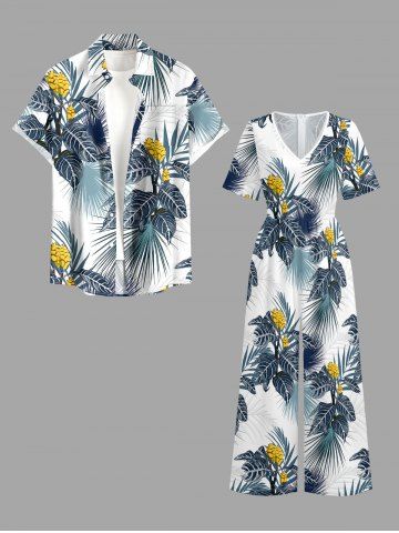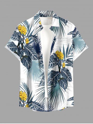 Short Sleeves Shirts > Plus Size Flower Tropical Leaf Print Buttons Pocket Hawaii Shirt For Men