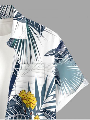Short Sleeves Shirts > Plus Size Flower Tropical Leaf Print Buttons Pocket Hawaii Shirt For Men
