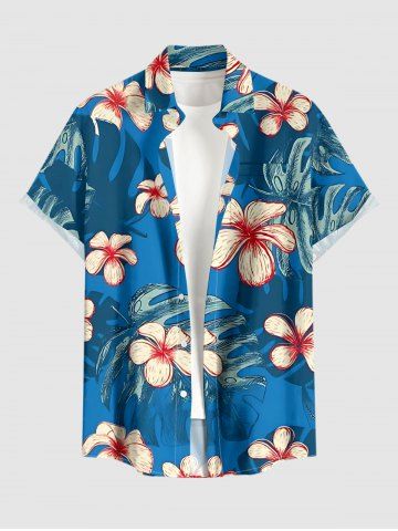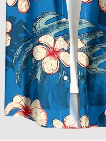 Plus Size Flower Tropical Leaf Print Buttons Pocket Hawaii Shirt For Men - Blue - S