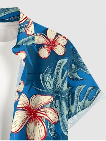 Plus Size Flower Tropical Leaf Print Buttons Pocket Hawaii Shirt For Men - Blue - 2xl