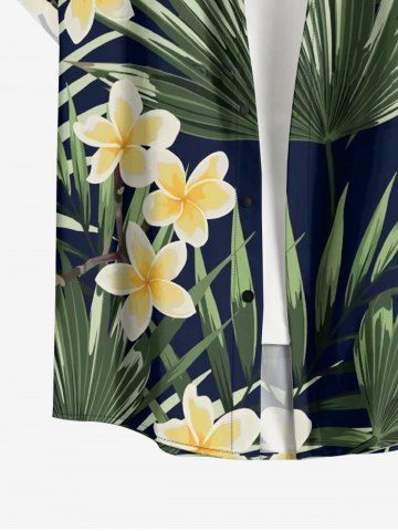 Plus Size Flower Tropical Leaf Print Buttons Pocket Hawaii Shirt For Men - Deep Green - Xl