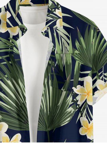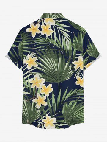 Plus Size Flower Tropical Leaf Print Buttons Pocket Hawaii Shirt For Men - Deep Green - 4xl