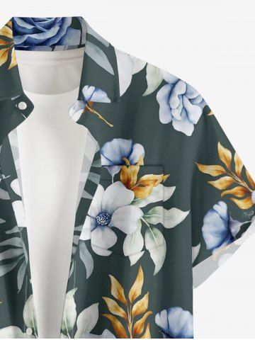 Short Sleeves Shirts > Plus Size Flower Tropical Leaf Print Hawaii Button Pocket Shirt For Men