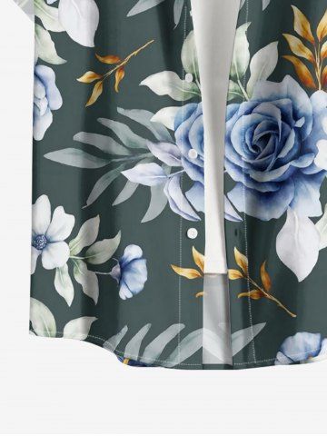 Plus Size Flower Tropical Leaf Print Hawaii Button Pocket Shirt For Men - Deep Green - 2xl