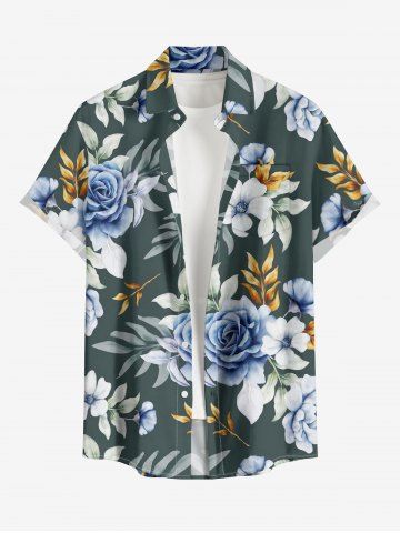 Short Sleeves Shirts > Plus Size Flower Tropical Leaf Print Hawaii Button Pocket Shirt For Men