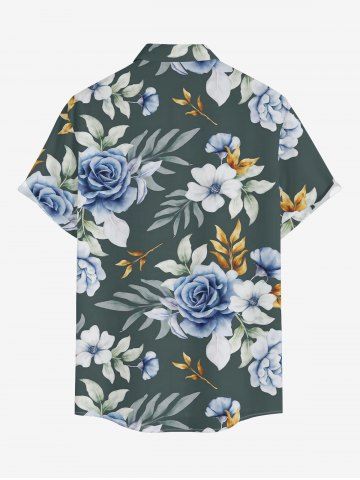 Short Sleeves Shirts > Plus Size Flower Tropical Leaf Print Hawaii Button Pocket Shirt For Men