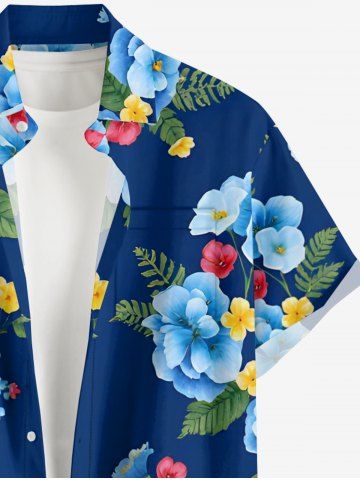 Short Sleeves Shirts > Plus Size Flower Tropical Leaf Print Hawaii Button Pocket Shirt For Men