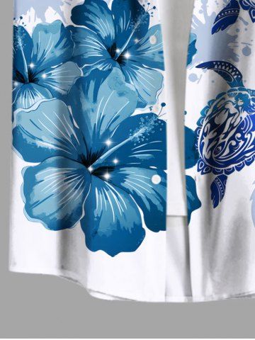 Plus Size Flower Turtle Bird Painting Splatter Print Hawaii Sea Creatures Ombre Button Pocket Shirt For Men - White - 3xl
