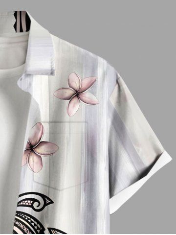 Plus Size Flower Turtle Ethnic Print Hawaii Button Pocket Shirt For Men - White - Xl