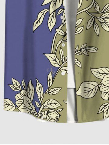 Plus Size Flower Two Tone Colorblock Print Button Pocket Shirt For Men - Multi-a - S