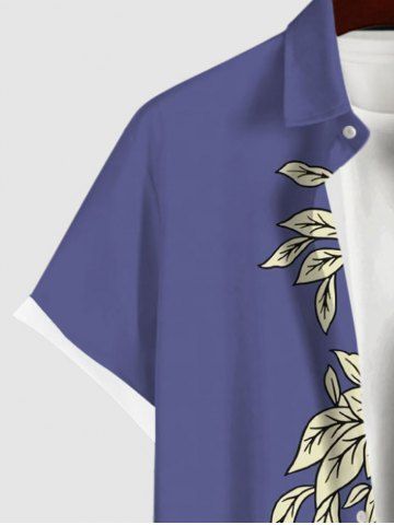 Short Sleeves Shirts > Plus Size Flower Two Tone Colorblock Print Button Pocket Shirt For Men