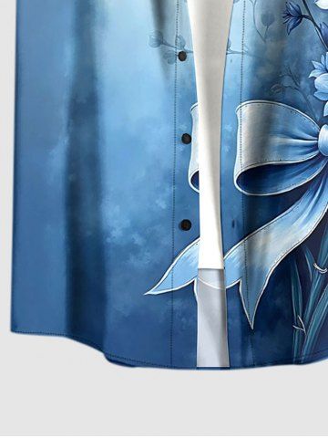 Plus Size Flowers Bowknot Ombre Print Buttons Pocket Hawaii Shirt For Men - Blue - L