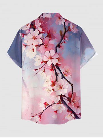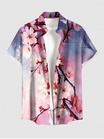 Plus Size Flowers Brach Ombre Print Buttons Pocket Hawaii Shirt For Men - Pink - S
