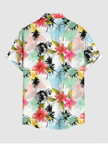 Plus Size Flowers Coconut Tree Colorblock Print Buttons Pocket Hawaii Shirt For Men - Multi - M