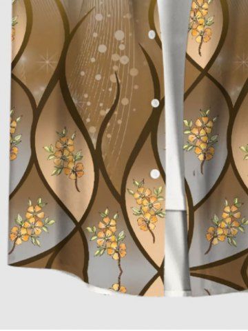 Plus Size Flowers Dots Glitter Ombre Print Buttons Pocket Shirt For Men - Coffee - 4xl