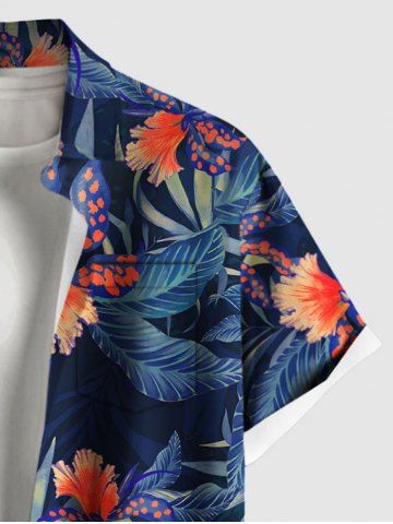 Short Sleeves Shirts > Plus Size Flowers Dots Leaf Print Buttons Pocket Hawaii Shirt For Men
