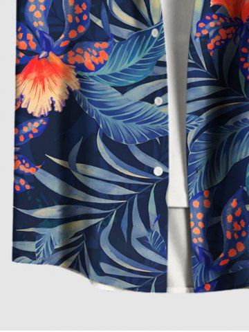 Plus Size Flowers Dots Leaf Print Buttons Pocket Hawaii Shirt For Men - Black - 6xl
