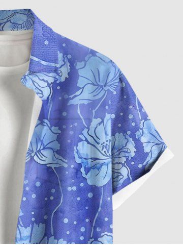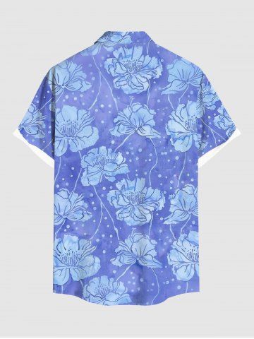 Plus Size Flowers Dots Print Buttons Pocket Hawaii Shirt For Men - Sky Blue - 6xl