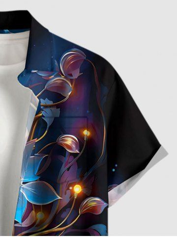 Short Sleeves Shirts > Plus Size Flowers Galaxy Glitter 3D Print Buttons Pocket Hawaii Shirt For Men
