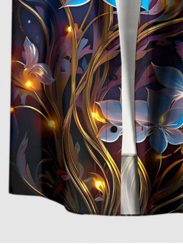 Plus Size Flowers Galaxy Glitter 3D Print Buttons Pocket Hawaii Shirt For Men - Sky Blue - S