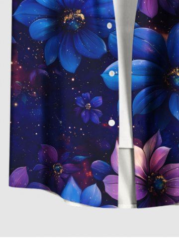 Plus Size Flowers Galaxy Star Print Buttons Pocket Hawaii Shirt For Men - Navy Blue - L