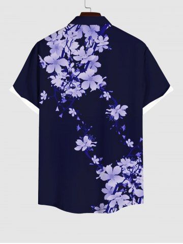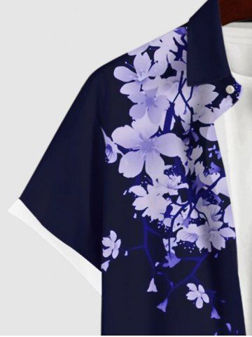 Plus Size Flowers Glitter 3D Print Buttons Pocket Hawaii Shirt For Men - Black - 2xl